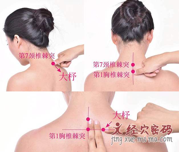 【大杼穴】d zh(BL11),经穴名。出《灵枢。刺节真邪》。属足太阳膀胱经。足太阳、手太阳之会。八会穴之骨会。别名:背俞,本神,百旁,百劳。